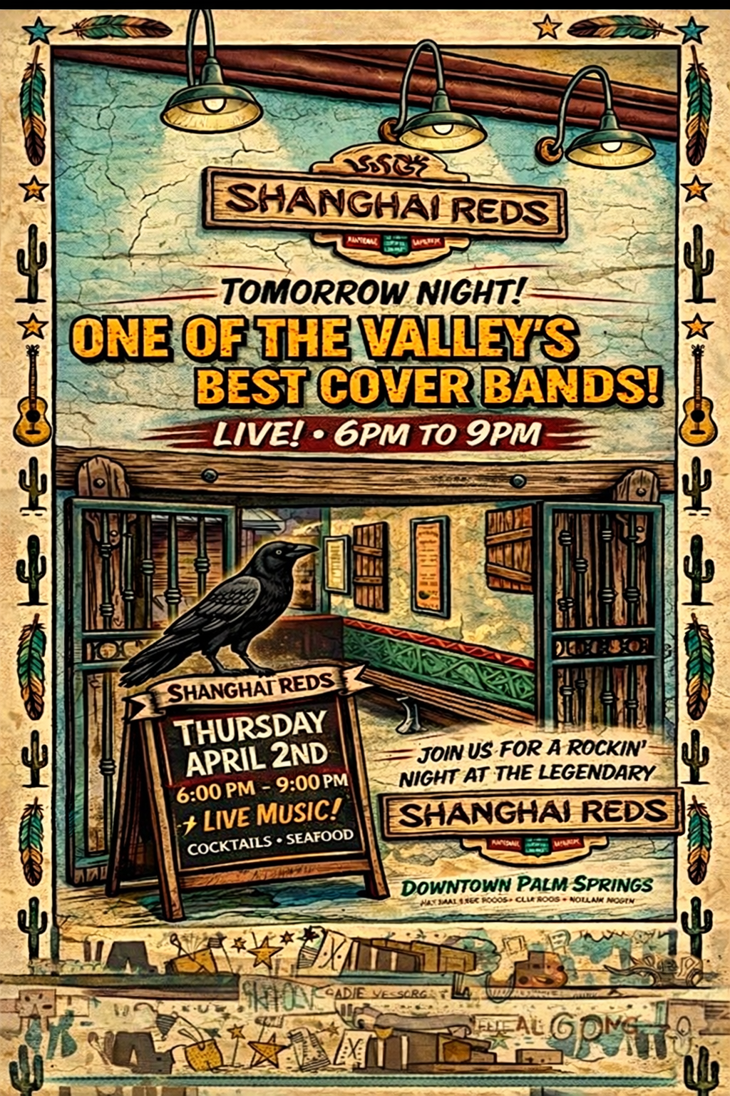 We are playing tonight from 6 pm to 9 pm . come on down to palm springs for a good time of music and good times